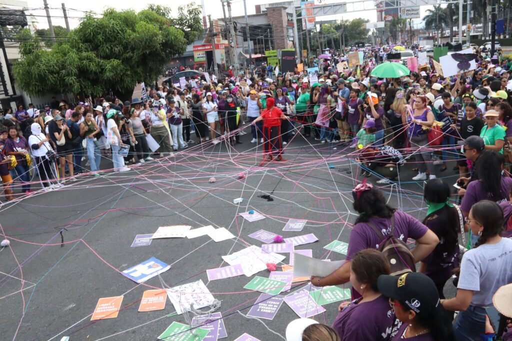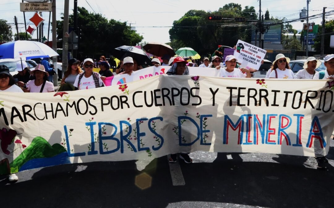 Este año la marcha del Día Internacional de la Mujer en El Salvador fue inundada por los mensajes contra la Minería en respuesta a la Nueva Ley General de Minería Metálica aprobada por el gobierno de Bukele que daría paso a la explotación minera. De la misma forma los pronunciamientos además de referirse a los feminicidios, las desapariciones de mujeres, la penalización del aborto y temas de igualdad de género, resaltaron el asesinato y la persecución de líderes medioambientales, así como el despojo y la ocupación de territorios comunales.