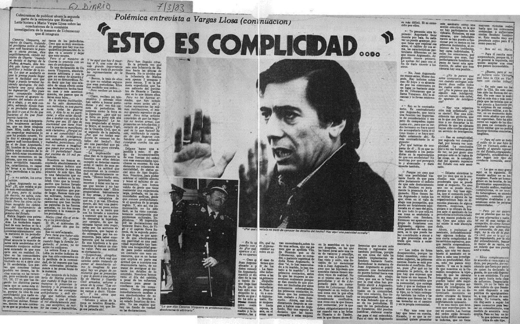 La Comisión por la Verdad y Reconciliación y otras organizaciones de defensa de los derechos humanos denuncian que usted se limitó a recoger los testimonios y pruebas que dieron los militares implicados en el crimen, las que naturalmente exculpaban al ejército, eliminando el resto. Aplicando el racismo manifestado en «Lituma en los Andes» dijo que habían sido los comuneros quienes mataron a los periodistas y piadosamente afirmó que «todos éramos culpables» por no «civilizarlos».