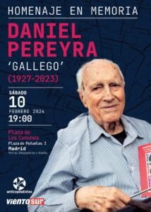 El pasado 6 de febrero de 2023 fallecía en Madrid el compañero y revolucionario internacionalista, ché Pereyra. El pasado 10 de febrero de 2024 el “Gallego” recibió un cálido homenaje en la Plaza de los Comunes, local, su local, al que asistió tantas veces.