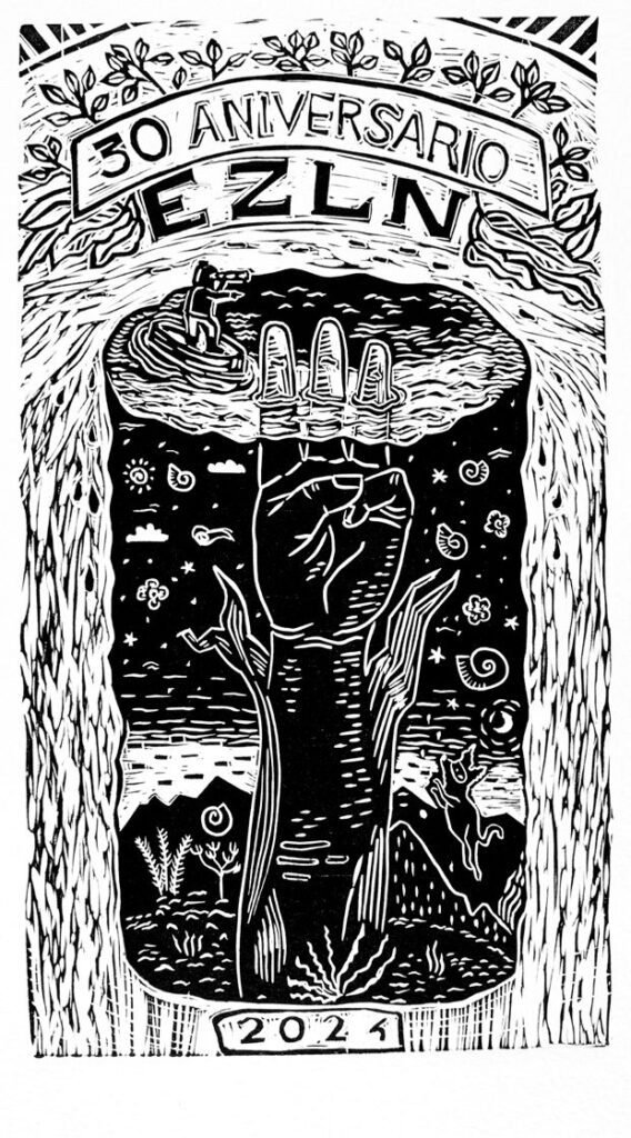- Además, que el libro se construya a partir de los grabados de 30 artistas o grabadores y que muestran al EZLN desde diversas miradas y estilos, es una idea excelente, porque hay que resaltarlo, los grabados son hermosos. Es una forma de llevarnos a mirar al EZLN con otro significado, uno más entre los muchos, los miles que podemos tener quienes nos hemos identificado con su lucha o para quienes no hemos sentido escuchados en su sentir. Me parece que esta idea nos abre otras posibilidades, en las que el arte se reafirma como una manera crítica de pensar y de ser, que traspasa las fronteras de la palabra o que busca otra palabra, la del arte, la del grabado, para decirnos algo valioso, importante, hermoso. Son 30 voces que vale la pena sentir, ver, pensar, escuchar.