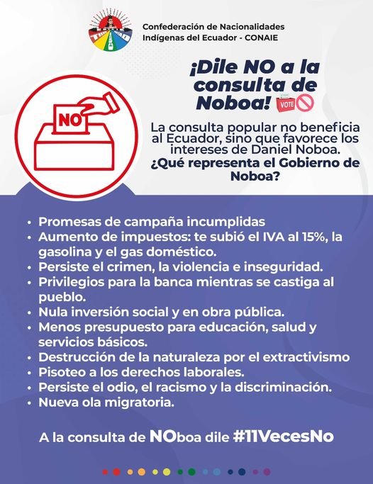 Da la espalda al pueblo ecuatoriano que ya en varias ocasiones, pero sobre todo en julio de 2022 había logrado que el presidente modifique el plan nacional minero y diga que no iba a intervenir en territorio indígena.