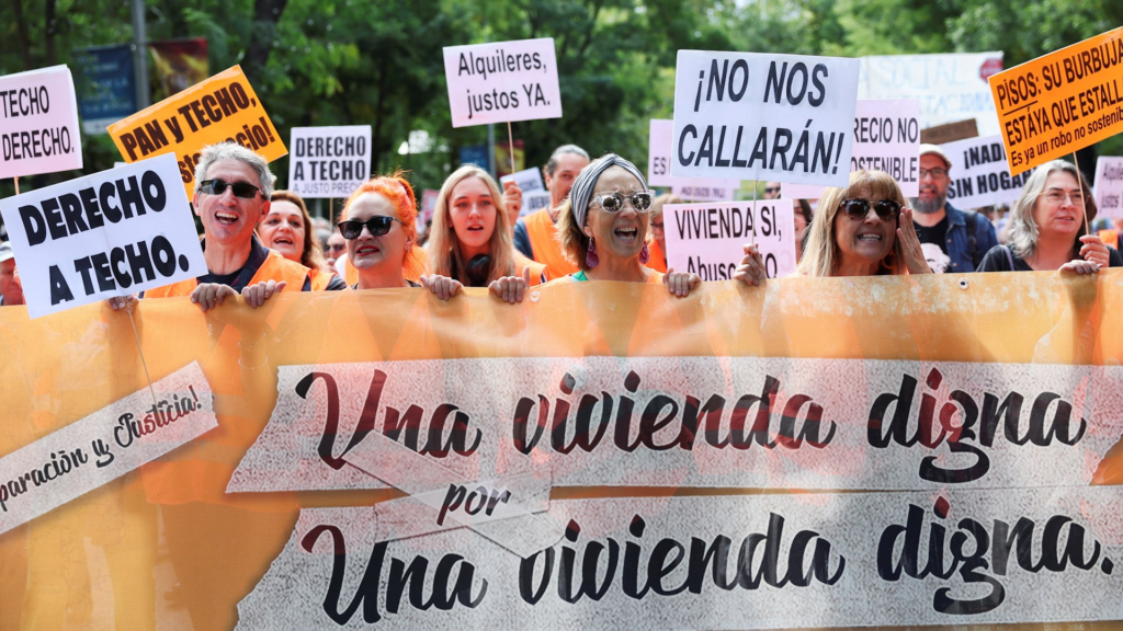 «Estamos aquí para que bajen los alquileres y para que los fondos buitre se vayan de nuestro país». Decenas de miles de personas tomaron las calles de Madrid bajo el lema: “La vivienda es un DERECHO, no un negocio”. Las movilizaciones continuarán y en el horizonte organizar una huelga de pago de alquileres.