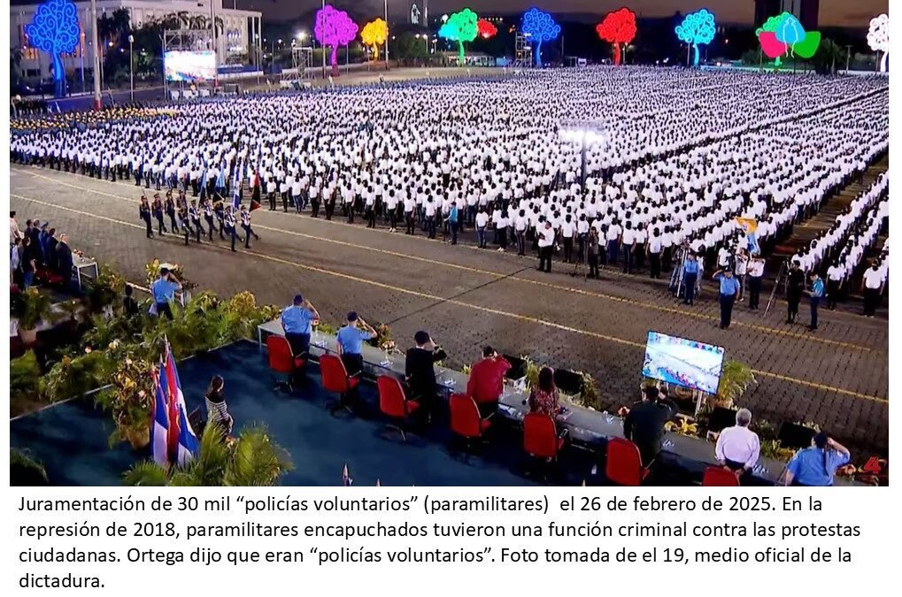 Si uno estudia la Historia, encontrará similitudes con las presentaciones de los nazis y fascistas de Alemania, Italia y Japón, pero también de regímenes como el de Corea del Norte. Según sus datos, estos paramilitares superan en número a policías y soldados de las fuerzas armadas. El propósito con estas exhibiciones y juramentaciones de supuestos paramilitares es profundizar el terror y paralizar cualquier esfuerzo de organización y articulación de la población, que no sabe si estos encapuchados son sus vecinos, dispuestos a denunciarlos con la mínima señal de desacuerdo con lo que ocurre en Nicaragua.